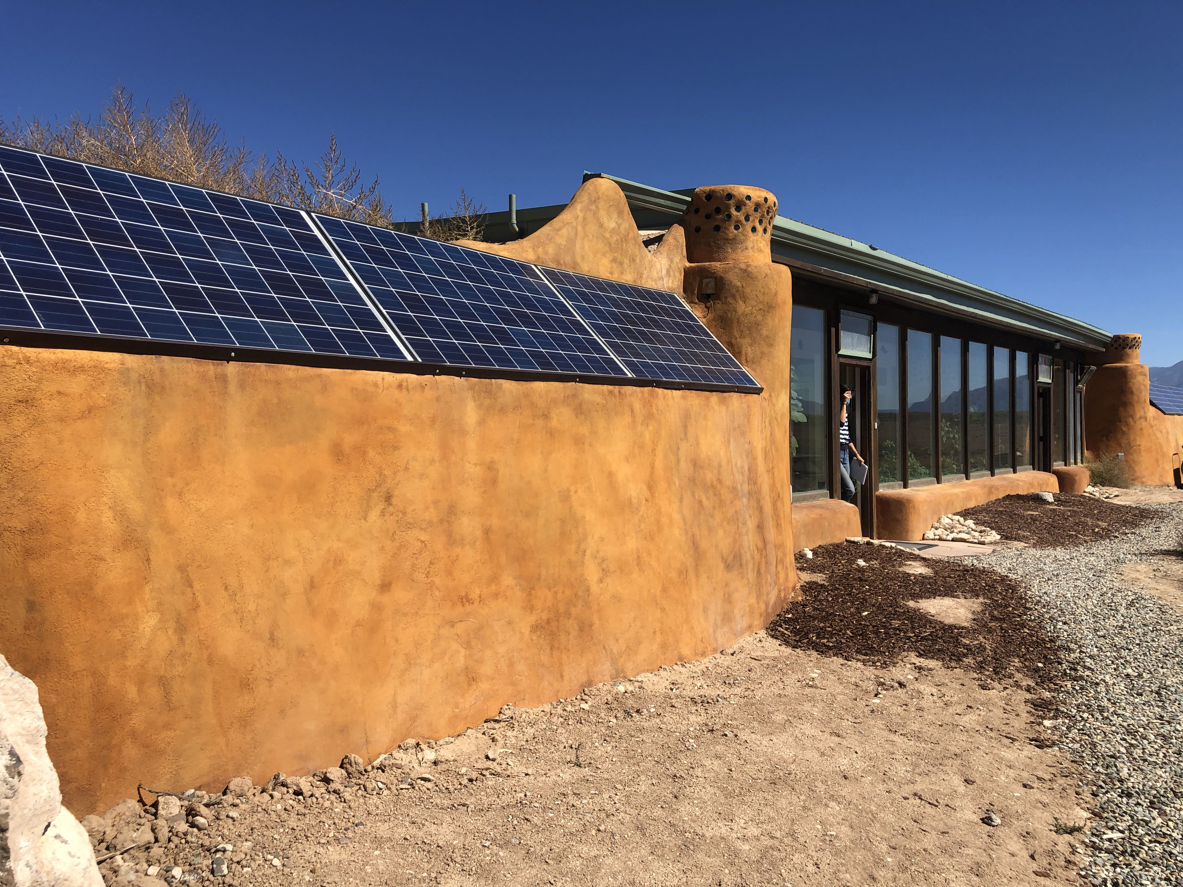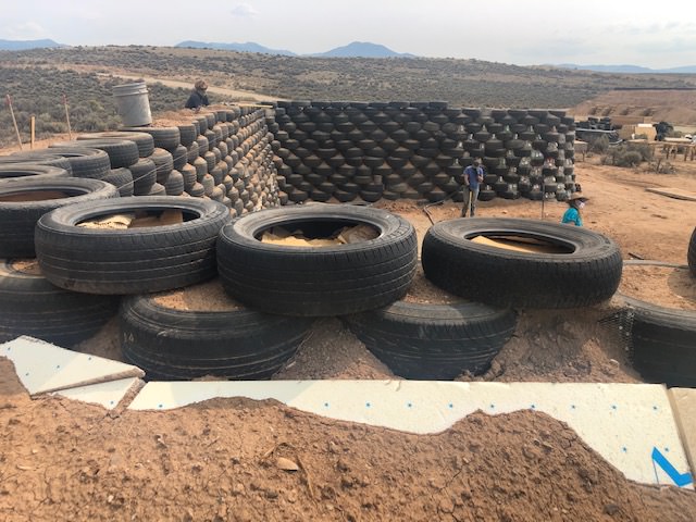 An Earthship is a type of passive solar house that is made of both natural and upcycled materials such as earth-packed tires, pioneered by architect Michael Reynolds on the 1970’s.
